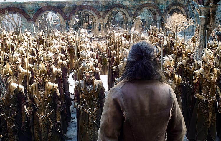 Dejme tomu, že se to podaří, i když ne bez škod na lidských životech a majetku. Znamená to snad, že teď všichni nechají trpaslíky na pokoji a dovolí jim užívat si navráceného domova? Tolkien sice vytvářel fantastické výjevy, ale jinak to byl těžký realista. Lidé budou chtít kompenzace, poněvadž pojišťovna nic nezacvakne. K Osamělé hoře se pak přiblíží elfové vedení Thranduilem (Lee Pace) a rozhodně považují část pokladu za svou. Thorin k jednání příliš přístupný nebude a povolá nové trpasličí síly vedené svým bratrancem Dáinem (Billy Connolly). Tak to máme tři armády. Kde jsou ty zbývající dvě?