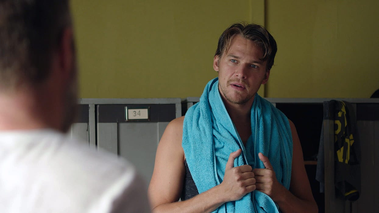 Ve snímku nechybí ani chlapský element. Ústřední mužská role byla svěřena Jiřímu Langmajerovi, kterému se sice náročné sportovní scény vyhnuly, ale zato na něho čekala nejedna odhalená scéna. Jiří Langmajer během krátkého rozhovoru prozradil, že kdyby se ve filmu nesvlékal atd., tak by mu to snad i chybělo. Jednu z menších rolích ztvárnil i dlouholetý kamarád Petra Kolečka, herec Jakub Prachař. „Ukáže toho hrozně moc, ale za strašně krátký čas,“ pronesl na adresu své postavy Prachař a s úsměvem dodal, že ve filmu pozdraví a odejde.