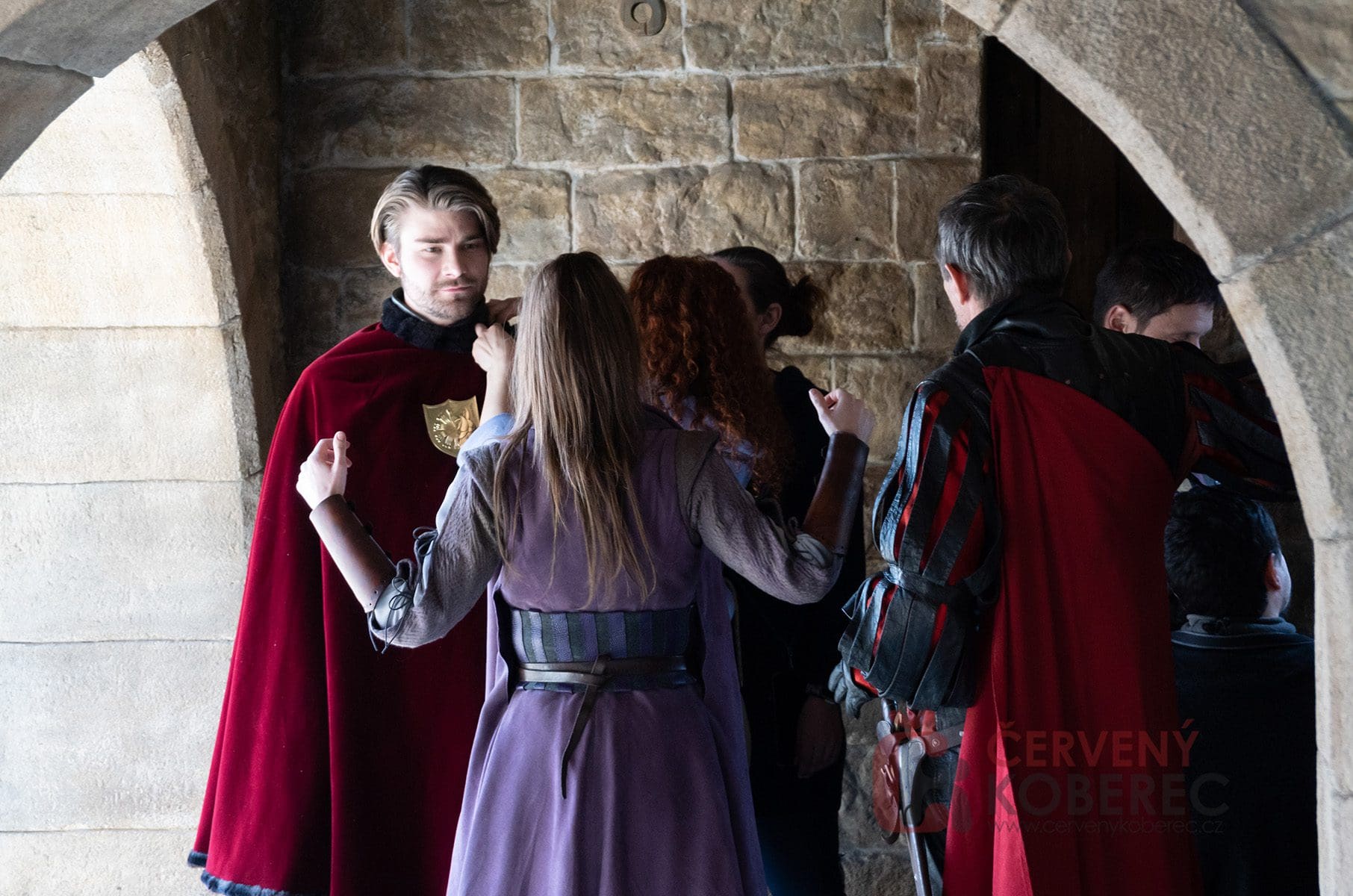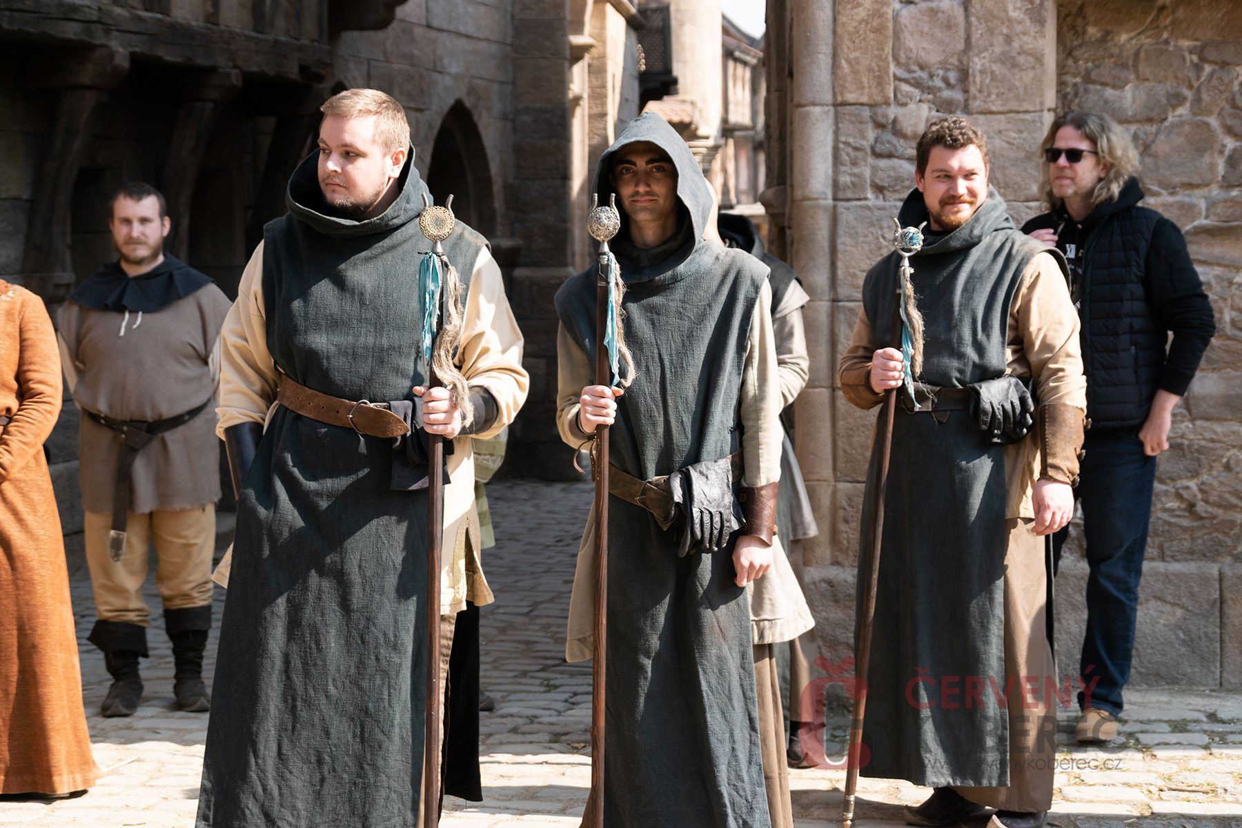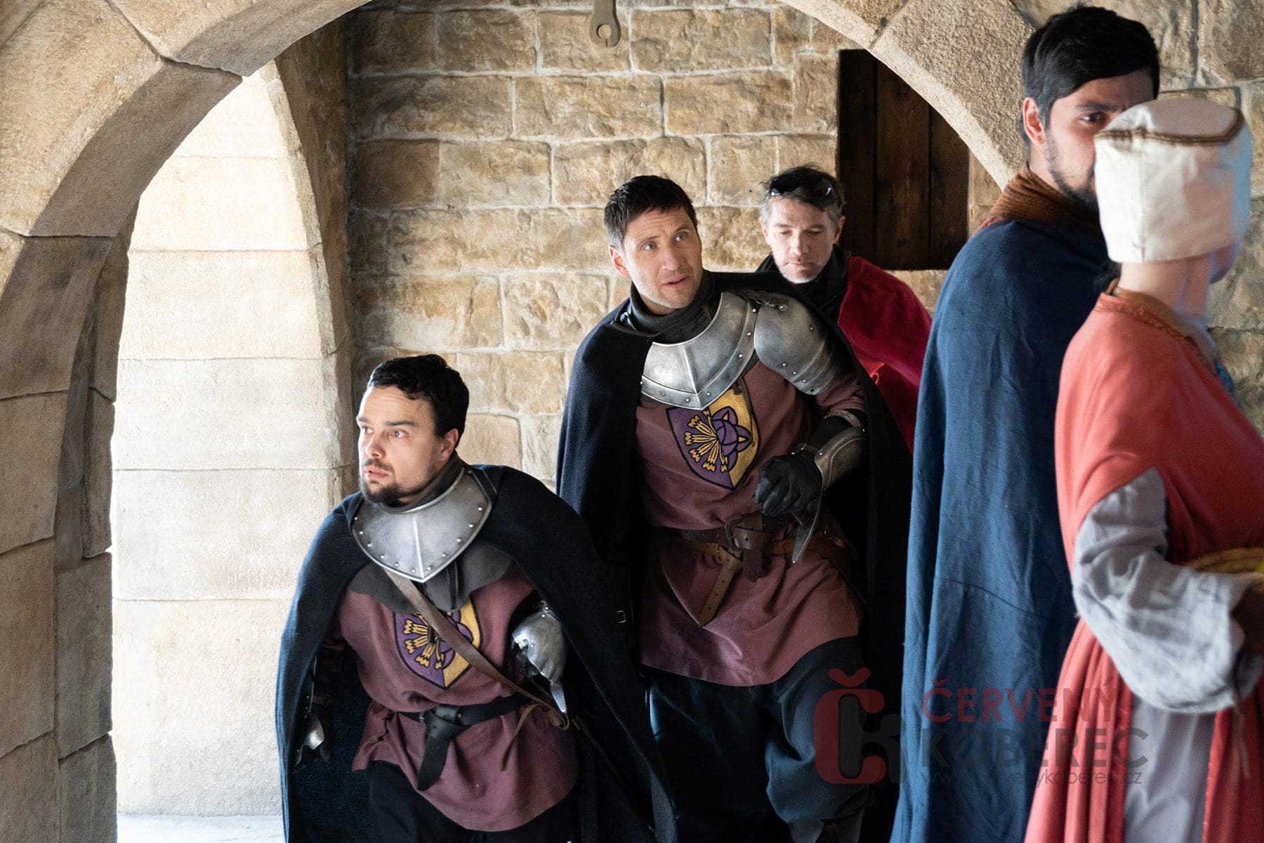 V pokračování uvidíme i vtipnou dvojici strážných, kterou opět hrají Martin Písařík a Jakub Ouvín. Těm kouzelné portály zřejmě pořádně zamotají hlavu, protože se na place objevili ve slušivých růžových župáncích a turbanech na hlavě. Oba herci si natáčení užívali, a i v „mužných“ úborech vtipkovali. I přes jarní počasí odhodili boty, vykročili na studenou dlažbu a nechali se od maskérů pokropit vodou, aby iluze návštěvy lázní vypadala co nejvěrohodněji.