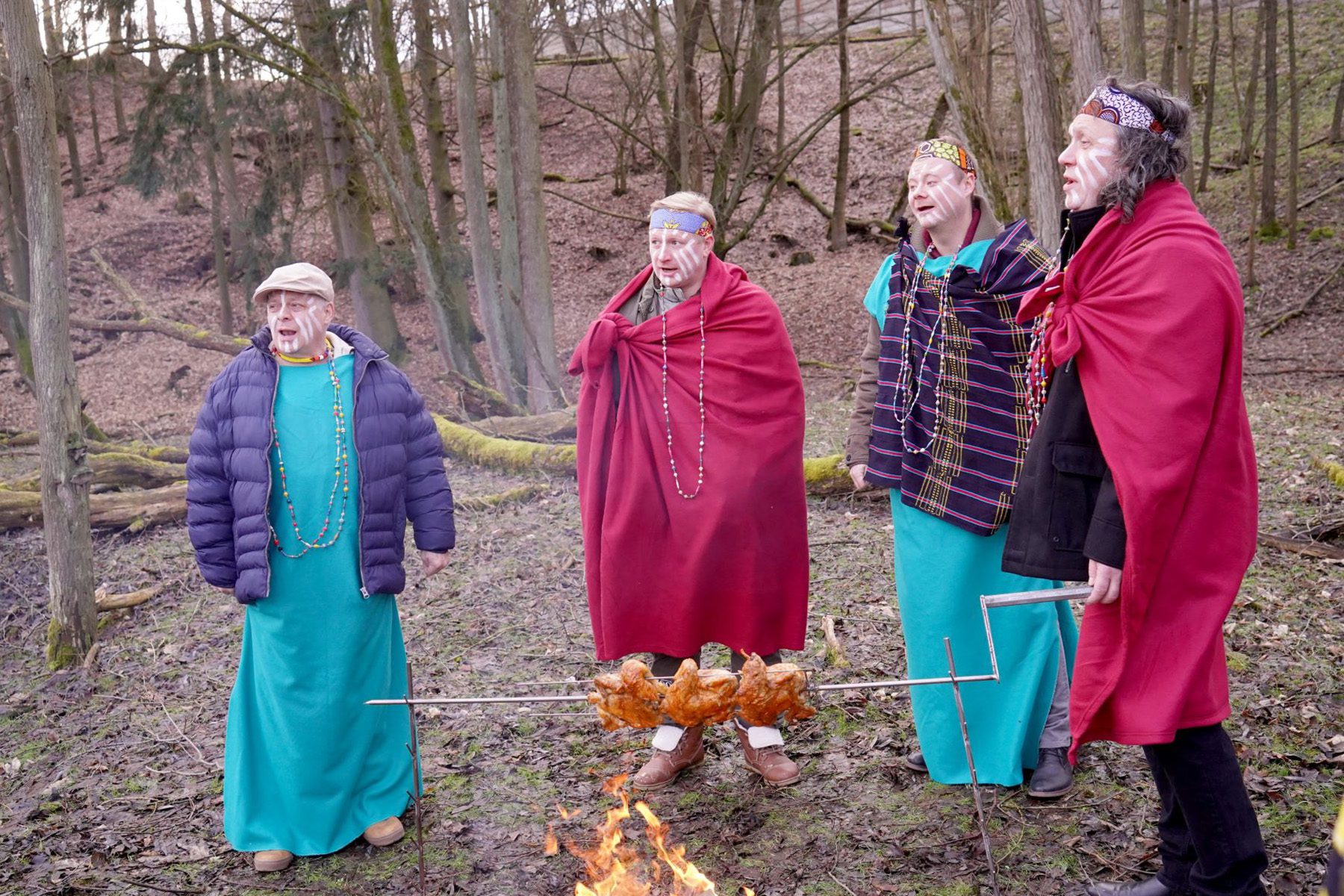 I jejich kolegové a Haďákův dědeček (Dušan Sitek) nebudou mít klidný pracovní den, protože v ZOO se potuluje bláznivý návštěvník. Aby ho Ladislav Hampl, Richard Genzer, Dušan Sitek, Bob Klepl, Oldřich Navrátil a Filip Kaňkovský nalákali a chytili, převléknou se do masajského oblečení, pečou kuřata a s tváří pokrytou bílou barvou tančí rituální tance. „Natáčeli jsme v Safari Parku ve Dvoře Králové po ránu a byla strašná zima. Měli jsme na sobě několik vrstev, a nakonec jsme byli rádi za masajské oblečení,“ zavzpomínal Sitek a dodal: „Měl jsem z toho větší strach, protože jsem musel zpívat v masajštině. Máme bílé čáry na obličeji. Prozradím, že všichni ze štábu se bavili, smáli se. My ne, my jsme to, co se natočilo, na monitoru neviděli. Dokonce to pan režisér nechal na mně a já jsem udělal takovou malou choreografii. Zkrátka jsem začal blbnout a ostatní se přidali.“