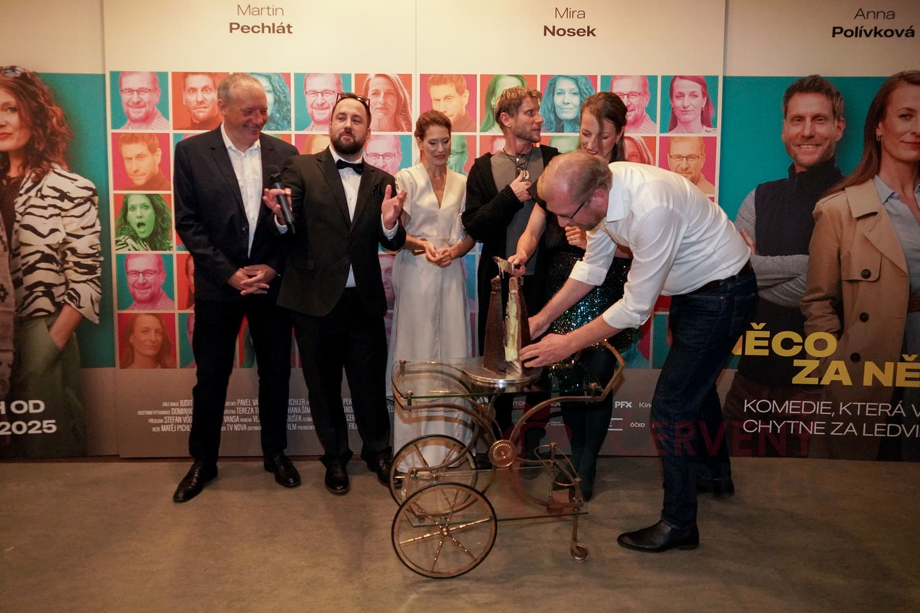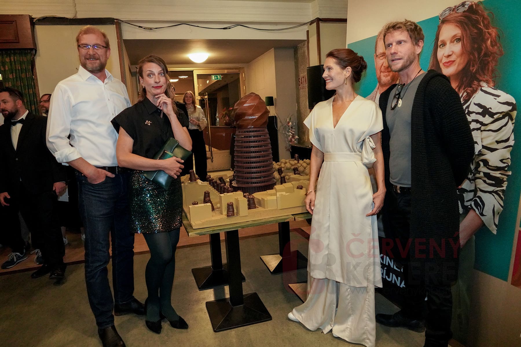 Po klasickém fotografování delegace (autor knihy, herci a režisér Matěj Pichler) se fotostěna rozestoupila a Martin Pechlát dovezl dort inspirovaný Danielovým návrhem nové dominanty města. To vše organizátoři připravili, aby mohla Kateřina, kterou hraje Anna Polívková, oslavit svoje narozeniny. Anička Polívková se poté chopila nože a sladkou pochoutku nakrojila.