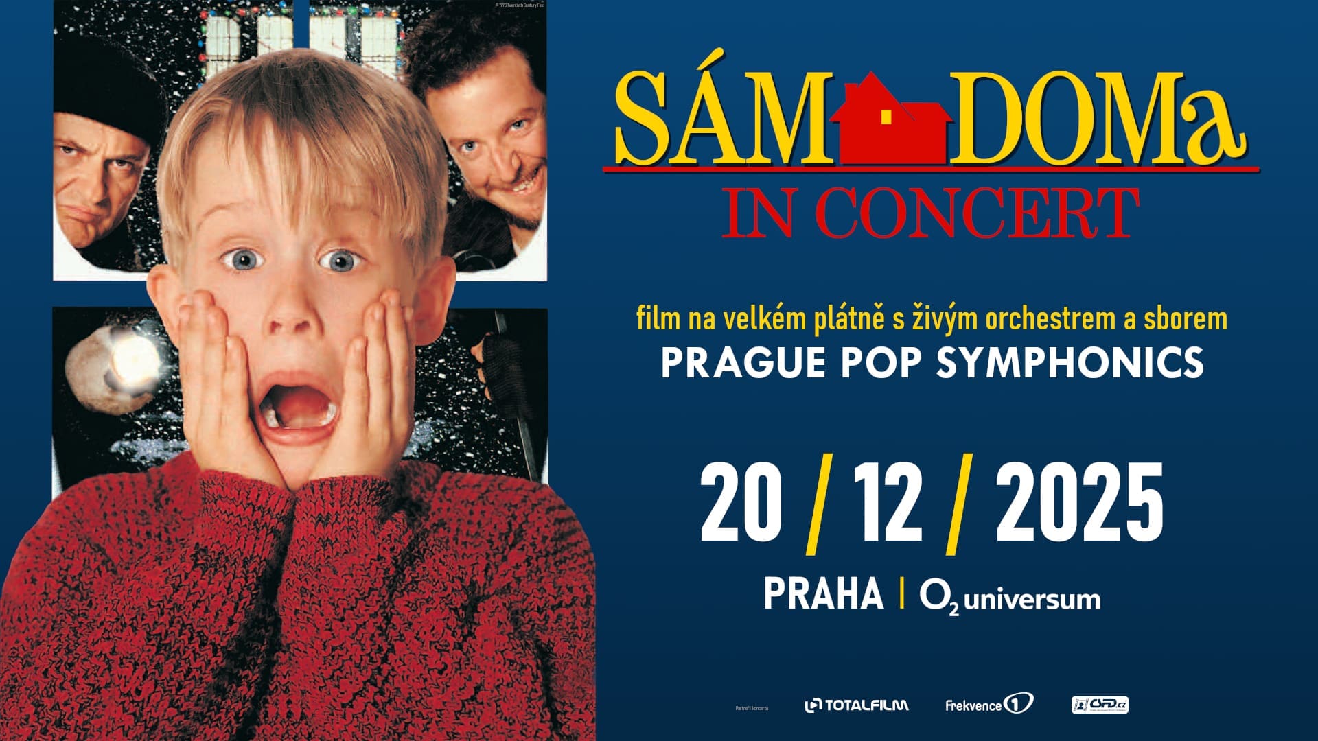 Vánoce se blíží a s nimi i chuť na lenošení u televize s horkou čokoládou a sledování oblíbených tematických filmů. Mezi stálice, vedle Tří oříšků pro Popelku a Mrazíka, bezesporu patří rodinná komedie Sám doma, ve které se Kevin McCallister (Macaulay Culkin) snaží ubránit domov před Mokrými bandity poté, co ho rodila omylem nechala na svátky doma samotného. Již za pár týdnů si budeme moci tento vánoční filmový hit vychutnat v naprosto jedinečné atmosféře, a to s nespočtem dalších fanoušků v pražském O2 universu, na velkém plátně a za doprovodu velkého symfonického orchestru a sboru.