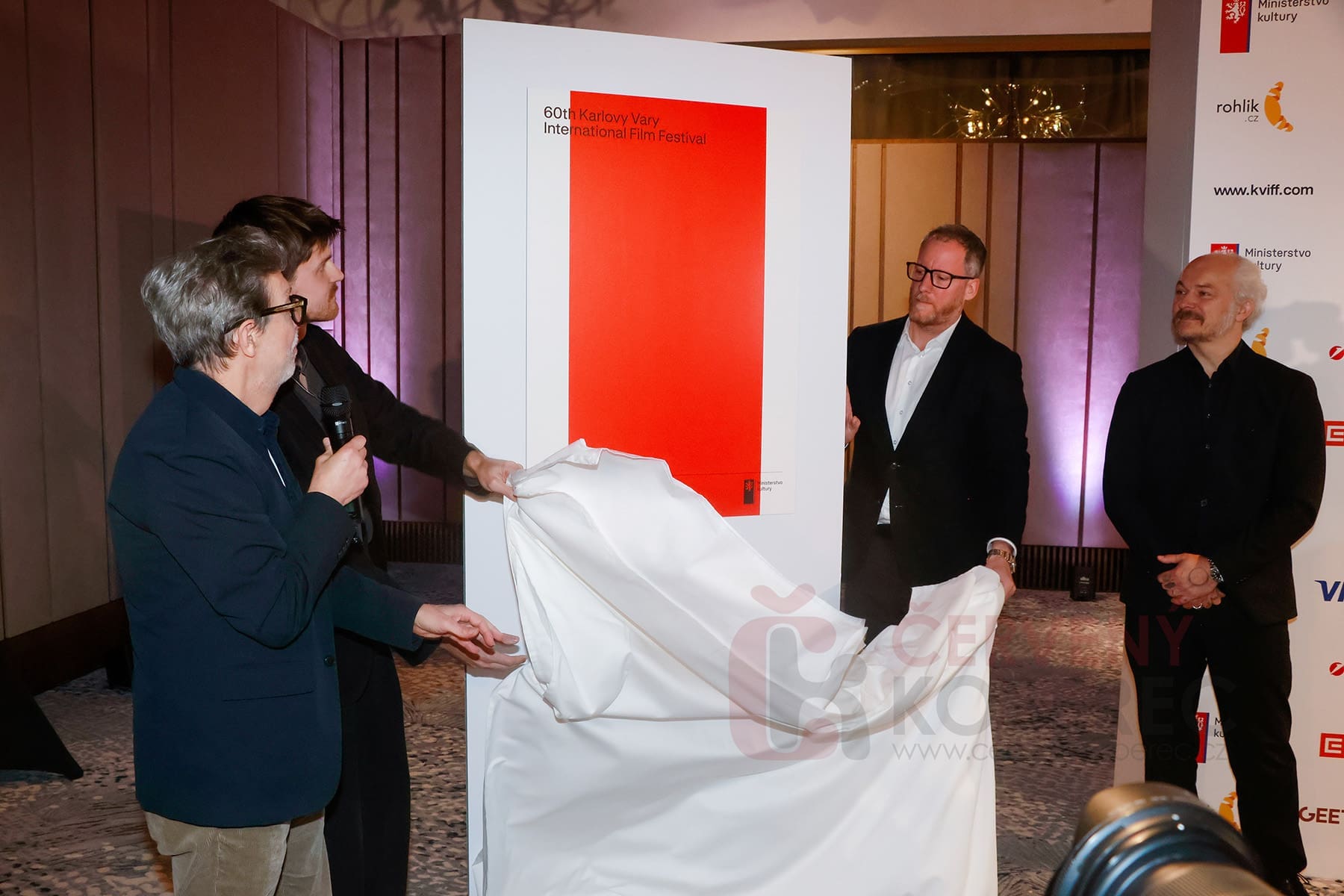 Jubilejní 60. ročník Mezinárodního filmového festivalu Karlovy Vary se blíží. A jako každý rok, i tentokrát přísun informací odstartovala první tisková konference. Na setkání byl již tradičně odhalen vizuál a první střípky nejen z programu. A jak řekl Aleš Najbrt při strhávání bílého plátna zakrývající plakát: „Je to ČERVENÝ KOBEREC.“