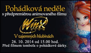 WINX CLUB – V tajemných hlubinách, tak zní název animovaného dobrodružství, které zpestří všem klukům i holkám blížící se víkend. Předpremiérová projekce se odehraje 26. října 2014 v rámci Pohádkové neděle v multikině Premiere Cinemas v Praze, Olomouci i Teplicích. Všechny poslušné děti se mohou těšit i na tombolu o pohádkové dárky a spoustu zábavy.