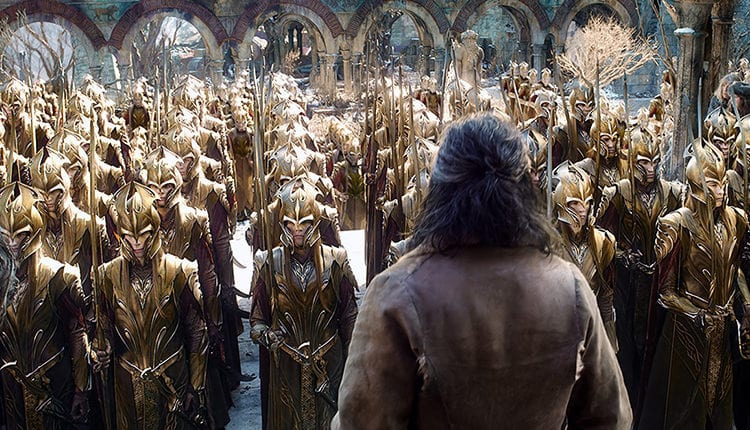 Dejme tomu, že se to podaří, i když ne bez škod na lidských životech a majetku. Znamená to snad, že teď všichni nechají trpaslíky na pokoji a dovolí jim užívat si navráceného domova? Tolkien sice vytvářel fantastické výjevy, ale jinak to byl těžký realista. Lidé budou chtít kompenzace, poněvadž pojišťovna nic nezacvakne. K Osamělé hoře se pak přiblíží elfové vedení Thranduilem (Lee Pace) a rozhodně považují část pokladu za svou. Thorin k jednání příliš přístupný nebude a povolá nové trpasličí síly vedené svým bratrancem Dáinem (Billy Connolly). Tak to máme tři armády. Kde jsou ty zbývající dvě?