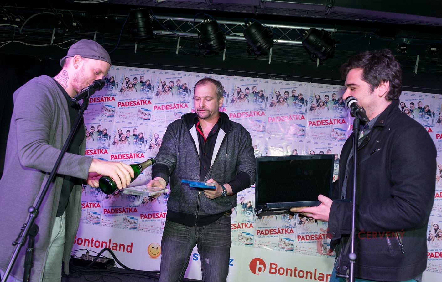 „Křtím tě ve jménu otce, syna a filmu svatého“, těmito slovy doprovázeli Jakub Prachař, Vojta Kotek a Marek Taclík křest filmu Padesátka, který nedávno vyšel na DVD, Blu-ray, ve speciální edici se soundtrackem a v digitální distribuci. Výběr možností, kde a jak si film pustit je opravdu rozsáhlý. Aby byl křest skutečně kompletní, přinesl režisér Vojta Kotek do prodejny Bontonland Music Megastore na Václavském náměstí i starý notebook, aby bublinky šampaňského zkropily opravdu všechny verze filmu.