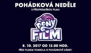 Bájná Equestrie je v maléru. Poníci plní barev a pozitivní energie se ovšem nevzdávají a vydávají se na záchrannou misi. Jak toto dobrodružství dopadne se dozvíme v animáku My Little Pony Film, který do kin vstupuje 12. října 2017. Tento duhově zbarvený snímek inspiroval i multikina Cinema City a Premiere Cinemas, která zvou 8. října 2017 na speciální dětské předpremiérové projekce. Premiere Cinemas promítá v rámci oblíbeného cyklu Pohádková neděle, který nabízí nejen filmové promítání, ale i dárečky, tombolu o krásné ceny a doprovodný program.