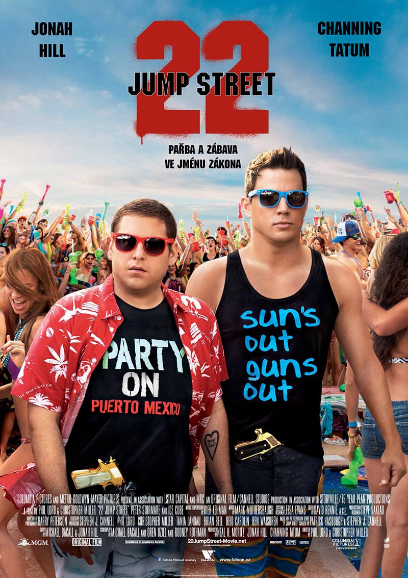 Důstojníky Schmidta (Jonah Hill) a Jenka (Channing Tatum) jsme poprvé potkali před dvěma lety, kdy byl obnoven projekt z 80. let, který sází na mladě vypadající policisty. Jejich úkolem je proniknout na domácí hřiště nepřítele, infiltrovat se mezi dealery a najít výrobce. Pokračování s názvem 22 Jump Street (kostel na 21 Jump Street totiž koupili Korejci) sází na stejný vzorec, herce, režiséry a dvojnásobný rozpočet, protože se očekávají dvojnásobné zisky. Co myslíte, bude to fungovat?