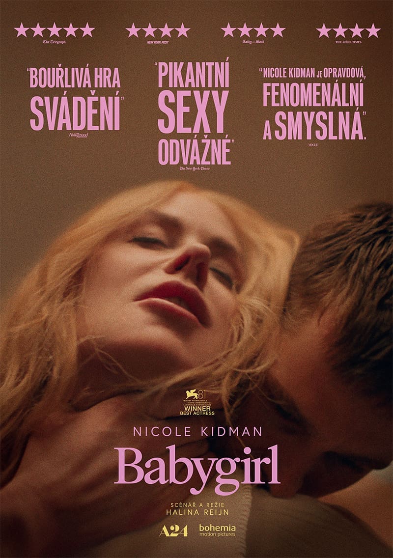 Erotický thriller Babygirl nažhavil Filmový festival v Benátkách a vysloužil se 6,5 minutové ovace vestoje. Tento napínavý a provokativní snímek sleduje vysoce postavenou ředitelku Romy (Nicole Kidman), která si začne románek s mladším stážistou Samuelem (Harris Dickinson).