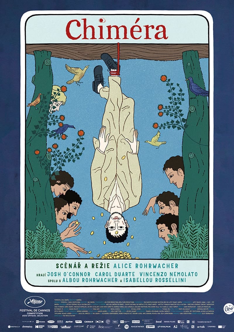 Lovci pokladů, vykradači hrobů a komedianti. To jsou členové party „Tombaroli”. Jeden z nich, Arthur (Josh O’Connor), ale vyniká zvláštním darem – schopností najít místa, kde jsou ukryty staré etruské poklady. Zatímco on sám urputně hledá ztracenou lásku, ostatní přátelé využívají jeho jedinečný talent k dosažení bohatství. Hon za chimérami je však dovede až na hranici mezi živými a mrtvými světy. Režisérka Alice Rohrwacher přináší ve svém nezaměnitelném stylu magický snímek zasazený do prosluněných italských scenérií.