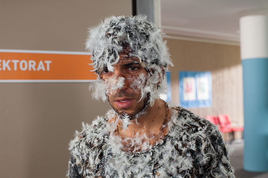 Než se ale dopracujeme k předvídatelnému konci, čeká nás náročná cesta. Na Götheho gymnáziu a především ve třídě 10B jde totiž doslova o zdraví a slabší jedinci tento tlak nejsou schopni vydržet. Zeki má spoustu vlastností, ale slabost mezi ně rozhodně nepatří. Nakráčí si to do školy s rebelskou jiskrou v oku, cigaretou v puse a nezbytnou alkoholovou posilou v krabičce od mléka. Jeho chování ovšem není pouze neomalené, ale chvílemi až trochu „hovadské“. Jedna věc jsou drsné praktiky, bez kterých divokou zvěř nelze zkrotit a něco jiného například opilecké eskapády na školních záchodcích. Díky uhrančivému pohledu M’Bareka „panu učiteli“ projdou i mnohé přešlapy přes čáru. Do práce se mu bude motat jeho upjatá kolegyně, kterou si zahrála Karoline Herfurth. Tuto nazrzlou Němku si budete určitě pamatovat z teenegerských komedií Holky to chtěj taky. Kouzelná je i prací poznamenaná ředitelka (Katja Riemann).