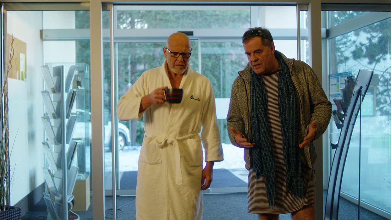 A jako by za trest nestačila kocovina, musejí se pánové vypořádat i s protivnou a všeho schopnou majitelkou sousedního hotelu (Jitka Čvančarová), které tak nějak omylem vyhlásili válku. Díky vytrvalému výchovnému působení hotelové recepční Nikoly (Berenika Kohoutová) se Rudolf ovšem přece jen pokusí navázat monogamní vztah, z něhož se ke všeobecnému překvapení vyvine vážná známost. Svět je ale malý a lež má krátké nohy. Obzvláště když role „deux ex machina“ připadne Rudolfově exmanželce Marii (Vanda Hybnerová). Stranou dění ovšem nezůstane ani Rudolfův a Mariin podivínský syn Bohdan (Vincent Navrátil), který svým rodičům nedaruje vůbec nic.